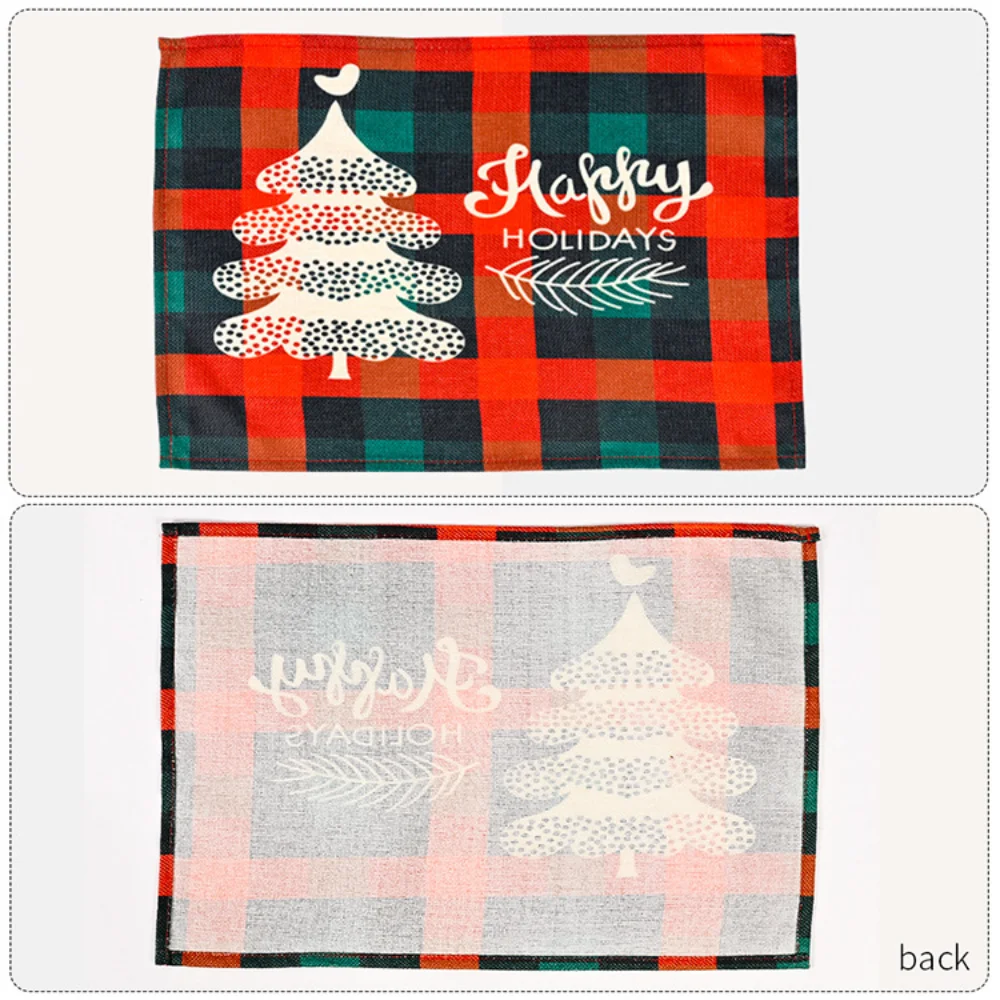 Merry Christmas Placemat Plaid Printed Decorations Tableware Pad Table Mat Napkins Xmas Tablecloth for Dining Table Home Decor